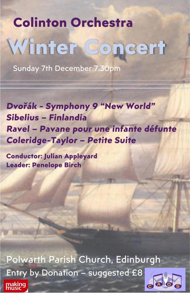 Our next concert is Sunday 7th December at 7:30PM at Polwarth Parish Church.